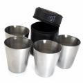Миниатюрные стопки для водки, шотов и виски из металла – главные украшения походного стола. Благодаря лаконичности и простому, незамысловатому дизайну они приобрели массу поклонников. Особенность таких стаканов – в конусообразной форме. Благодаря продуманному дизайну процесс распития алкогольных напитков из такой посуды показал следующие результаты: