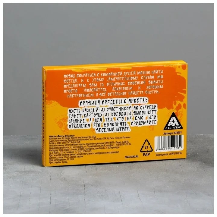 Купить игра для компании "фанты буханты" 20 карт от 100 руб. с доставкой до пункта выдачи в Кунгуре. Интернет магазин ДекаМаркет. Оплата при получении.